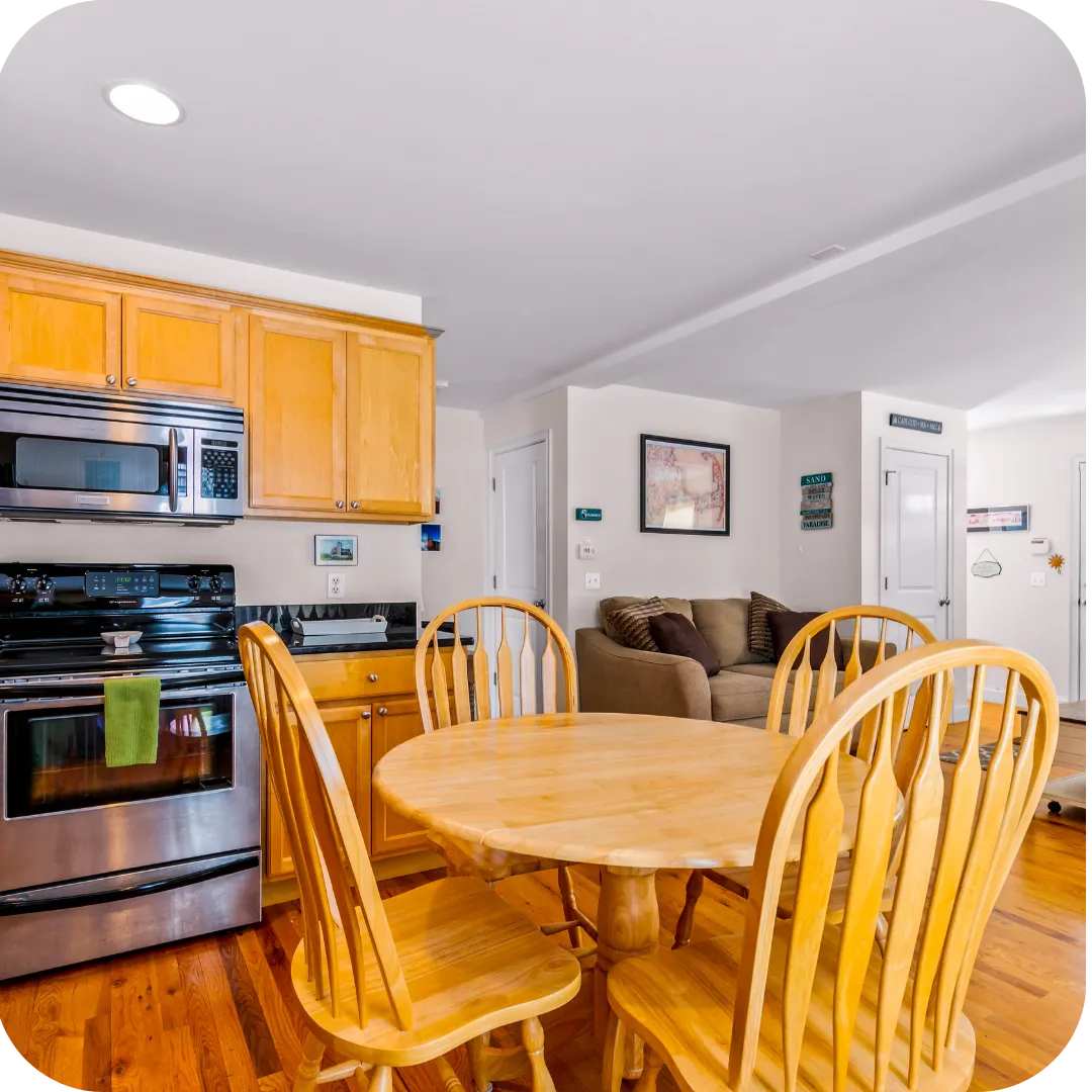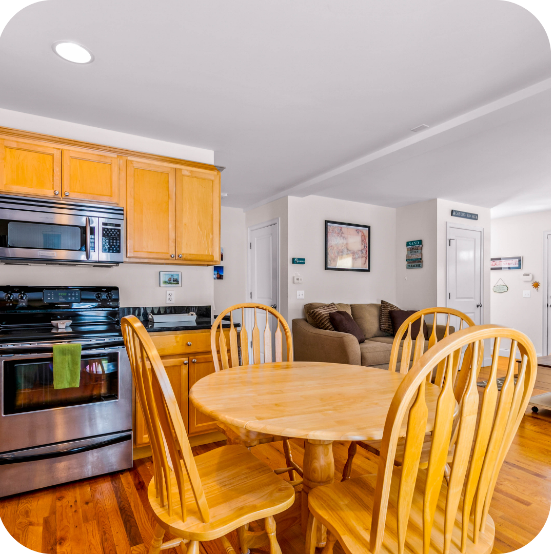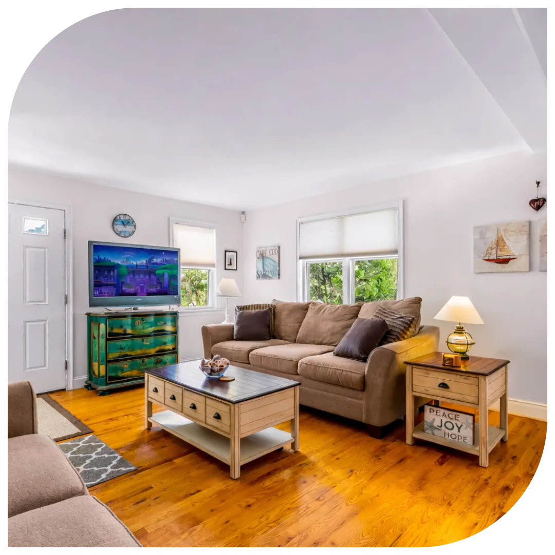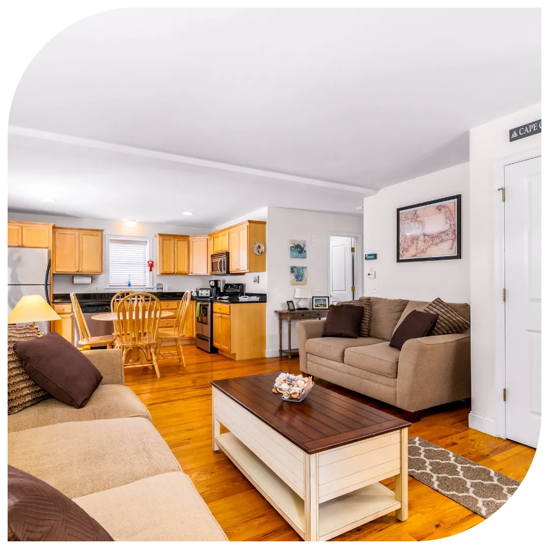 In the evenings, unwind in cozy, well-appointed living spaces made for relaxing, reconnecting, and savoring the laid-back rhythm of Cape Cod living.